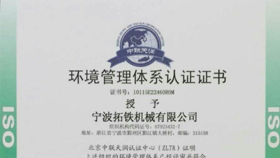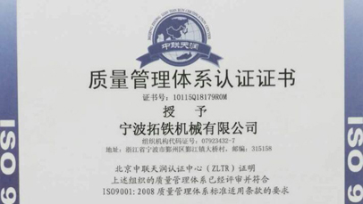 2015年11月,拓鐵機械獲得國家ISO9001質量管理體系認證
